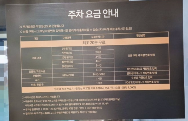 대전 갤러리아백화점 앱 무료주차 꿀팁