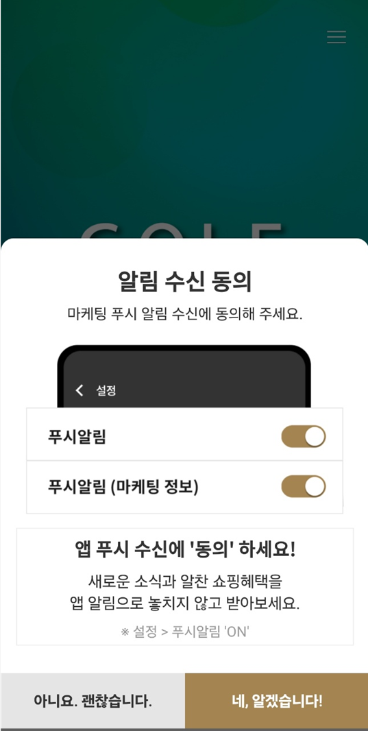 - 백화점 근처에 있을 때 위치 기반 알림 허용