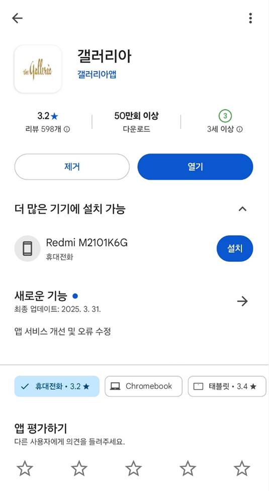 - 플레이스토어: 갤러리아백화점 안드로이드 앱 다운로드