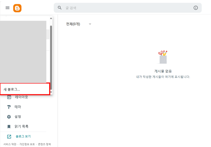 다음과 같이 블로그스팟에 로그인 후 새로운 도메인을 매핑시킬 새로운 블로그를 만들어보아요