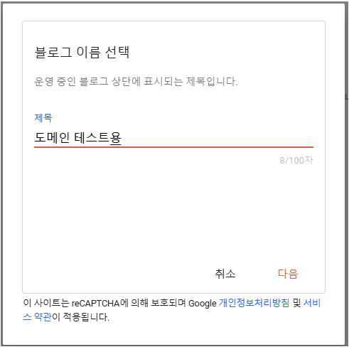저는 이름을 [블로그 테스트용]이라고 명명하였습니다. 그리고 [다음] 버튼을 클릭합니다.